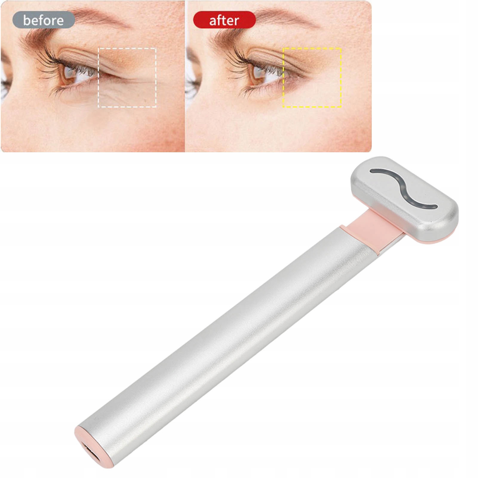 - Рекомендовано використовувати після очищення обличчя запобігти впливу масла на досвід користувача. Відірвіть прозору захисну плівку вставної головки багатофункціонального пристрою для догляду за очима та зверніть увагу на напрямок стрілки, що обертається на захисній плівці. Не обертайте вставну головку в протилежному напрямку, оскільки це може пошкодити вставну головку через зовнішню силу та спричинити проблеми. Багатофункціональний прилад для догляду за очима використовує електронний інтелектуальний сенсорний чіп і інтелектуальний сенсорний перемикач. Коли рука тримає тіло, а головка доставки торкається шкіри, багатофункціональний пристрій для догляду за очима починає працювати негайно та зупиняється, коли відходить. Біомікроелектрика, оптична краса шкіри і звукові коливання вмикаються одночасно і вимикаються в той же момент, коли вони гаснуть. Перед використанням протестуйте його на руках, а потім нанесіть на область навколо очей, якщо не відчуваєте дискомфорту. Під час використання навколо очей виникає відчуття мерехтіння світла, коли очі відкриті або закриті, що є функцією біологічної мікроелектрики та є нормальним явищем. Окрім використання в області очей, багатофункціональний пристрій для догляду за очима також підходить для тривалого використання на обличчі та шиї. Він може ефективно полегшити проблеми шкіри, такі як тонкі лінії під очима, темні кола, мішки під очима, носогубні зморшки та лінії шиї, а також підтягнути та розгладити шкіру. Для різних частин обличчя його можна використовувати під відповідним кутом відповідно до різних частин.