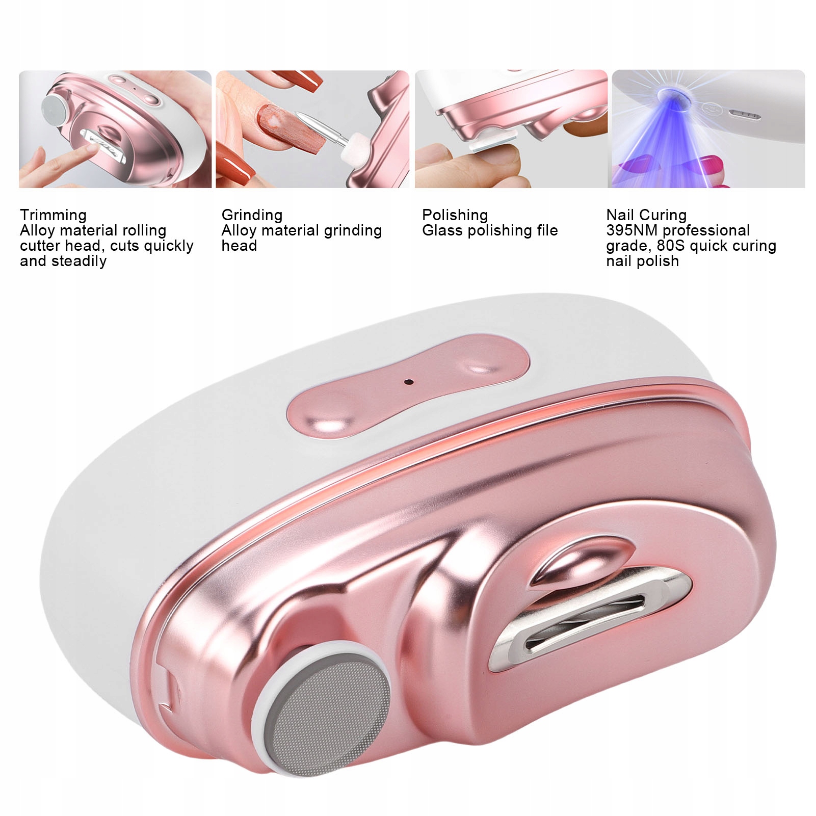 1. ДОГЛЯД ЗА НІГТЯМИ 4 В 1: ця електрична машинка для нігтів поєднує підстригання, шліфування, полірування та полімерне світло в одному пристрої, усуваючи потребу в кількох інструментах, забезпечуючи результати салонного рівня вдома.