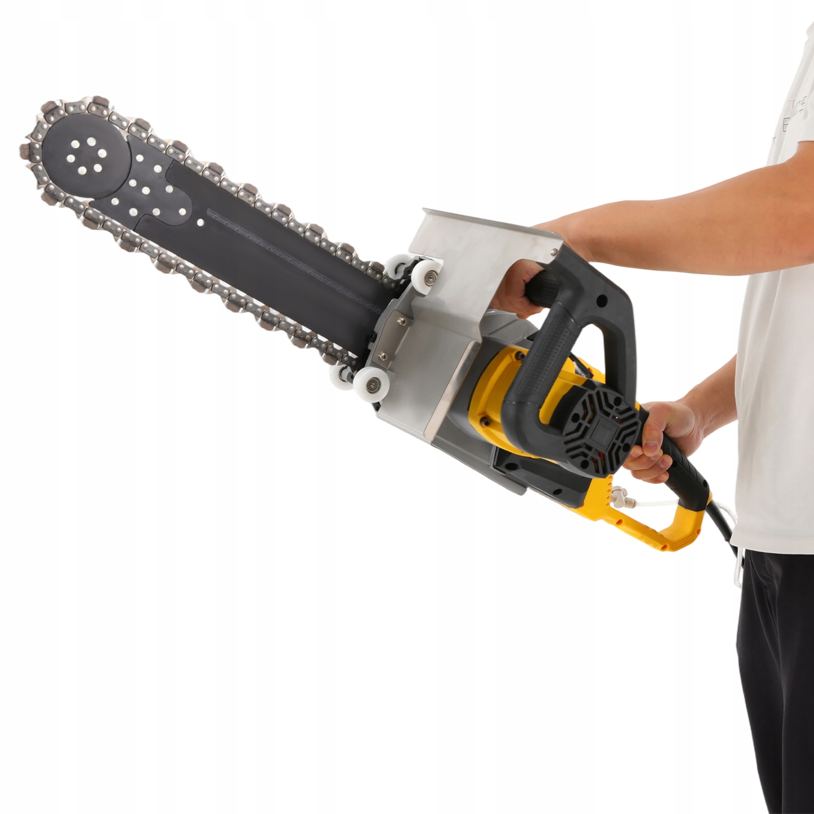 - Виготовлена з високоякісних матеріалів, ця пила для бетону забезпечує тривалу та надійну роботу. Його водяний насос ефективно охолоджує зону різання, подовжуючи термін служби ланцюга, мінімізуючи викиди пилу для чистішого та безпечнішого робочого місця. Цей інструмент, придатний для будь-яких завдань, починаючи від ремонту будинку й закінчуючи великими будівельними роботами, забезпечує незмінні результати та стає важливим активом для різноманітних проектів.