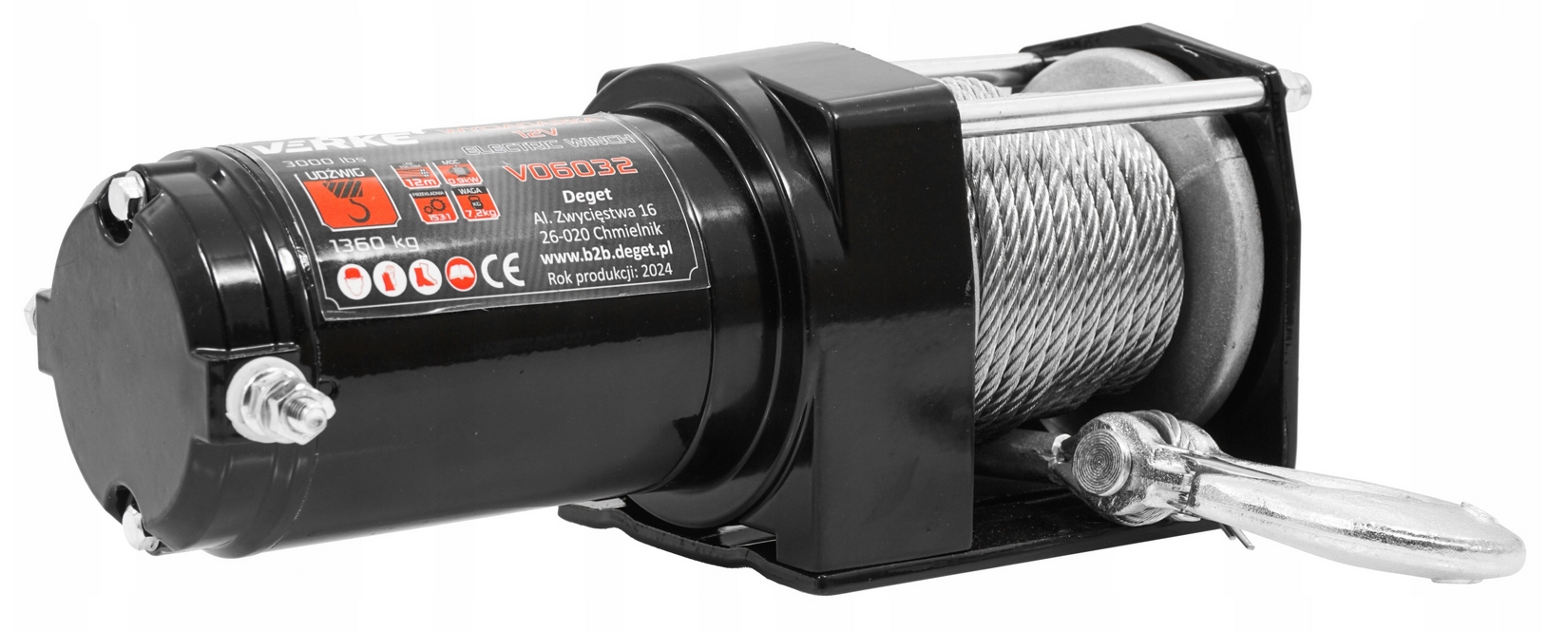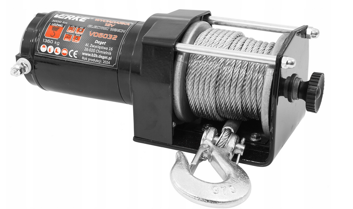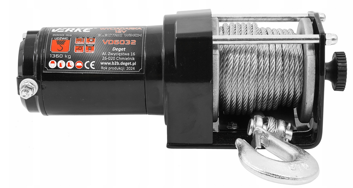 12В лебідка, 3000 фунтів, сталева лініна 12m Verke