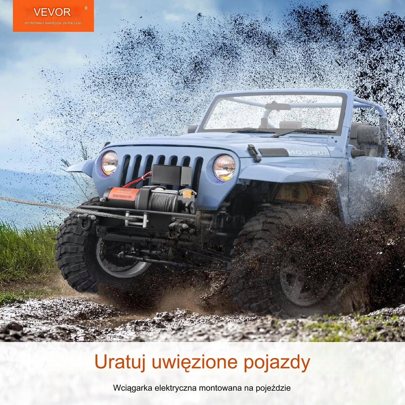 Електрична лебідка Vevor оснащена водонепроникною конструкцією IP55. Він призначений для роботи у складних умовах, таких як грязь, зливи та сніг.
