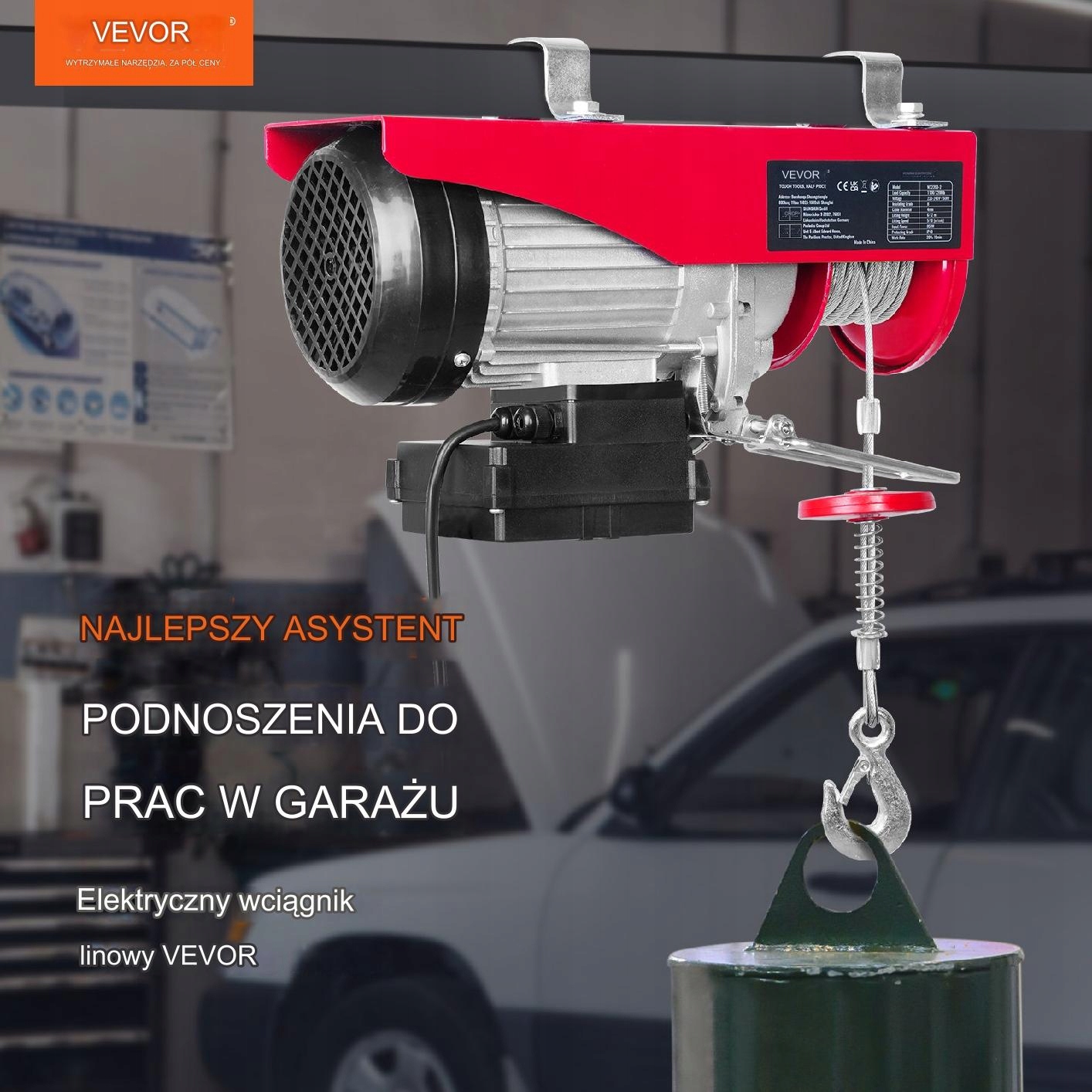Ця лебідка легко піднімає невеликі двигуни, коробки передач, великі інструменти для майстерні або будівельні матеріали. Ємність навантаження: 500 кг (одинарна лінія), 1000 кг (подвійні лінії).