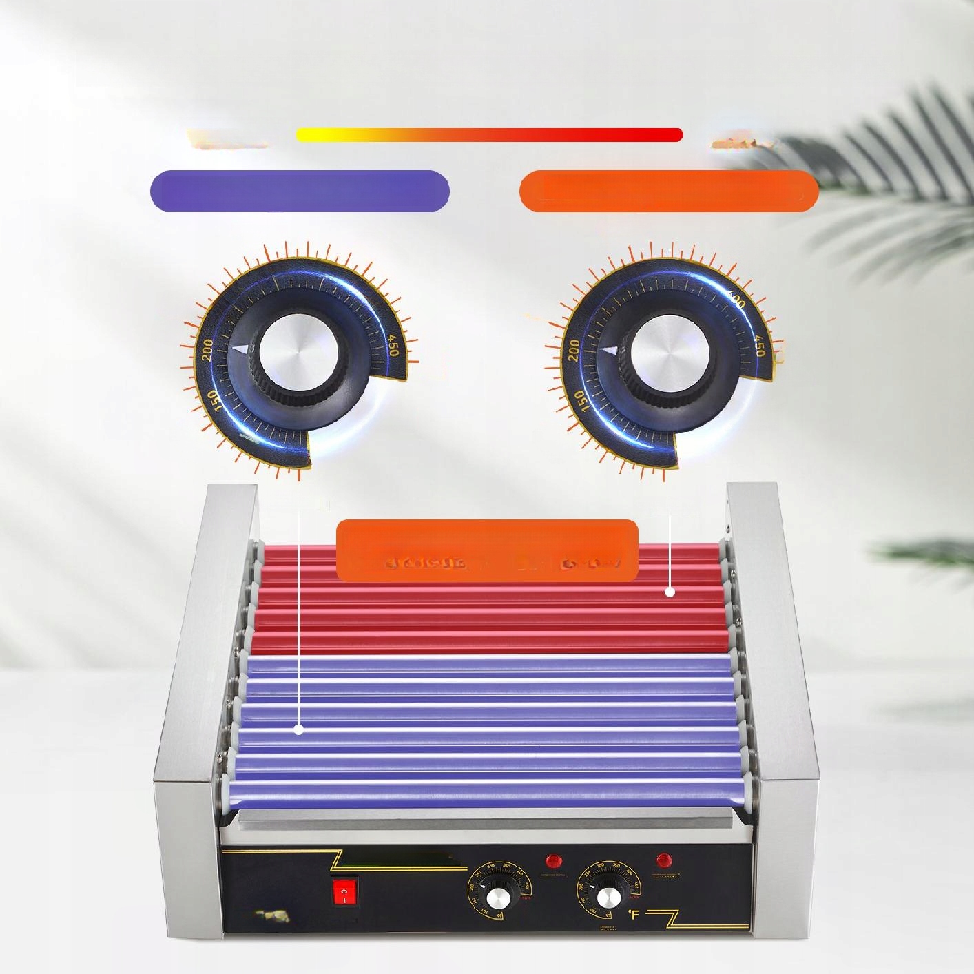 Подвійне управління температурою дозволяє легко випікати на передній частині пристрою та тримати тепло хот -догів на задній частині, що забезпечує свіжий смак хот -догів.
