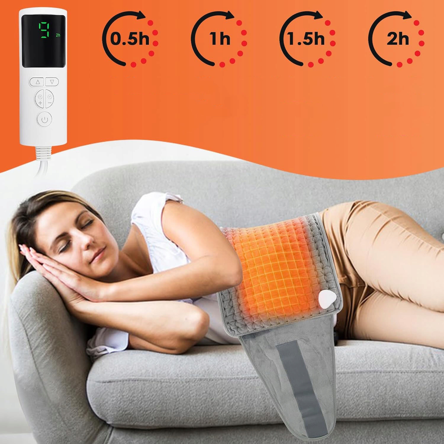 【Сильні параметри】 Електрична подушка нагріву має 9 рівнів температури та 4 налаштування таймера. Ви можете встановити температуру від 30 до 120 хвилин. Задовольнити різні теплові потреби завдяки простому контролю.
