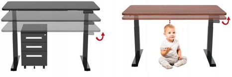 кадр, створений для людей із вище середньої висоти. Стіл відповідає вам = ергономічним. Конкретний діапазон коригування 69,5 см (найнижчий предмет) до 134,5 м (найвища позиція).