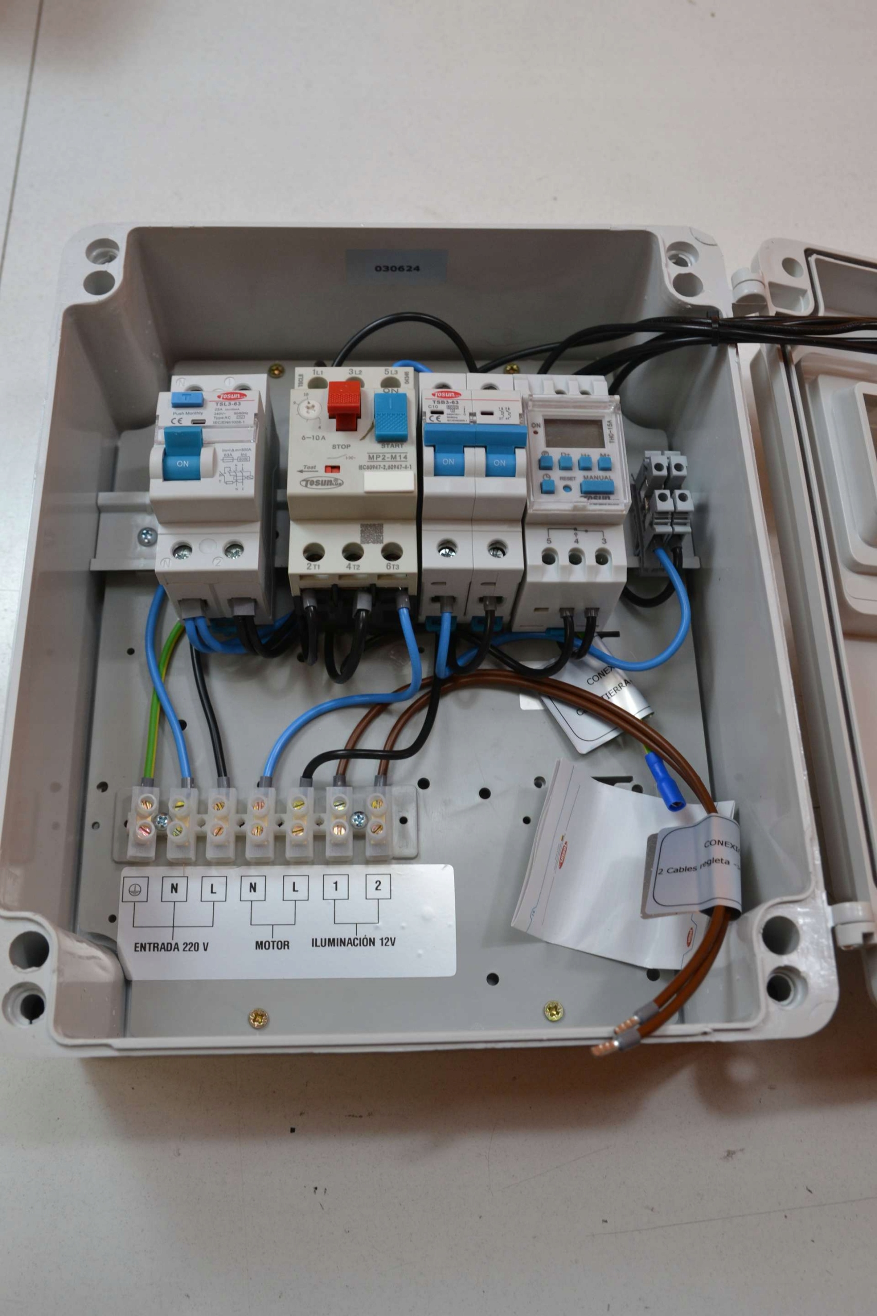 Електрична пластина басейну від Guardamotor (відповідно до потужності водяного насоса, перевіряйте підсилювачі насоса) та годинник для програмування та захисту фільтрації басейну. Дощ та погодні умови, встановлені в коробці IP65. Годинник оснащений пам'яттю, яка заважає втрачати налаштування у разі відмови потужності. Магнеттермальна коробка, прикріплена до системи освітлення басейну, а також проводки. Не включає трансформатор, який потрібно встановити для підключення системи освітлення.