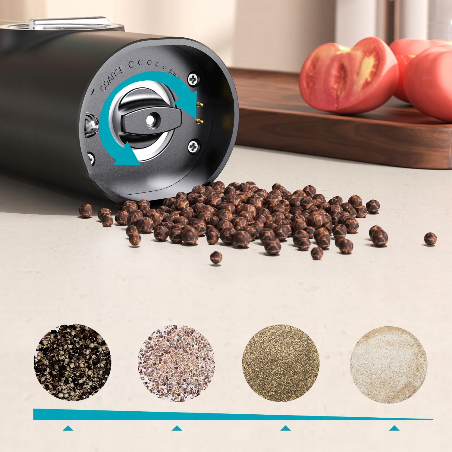 - Продукт має регульований ступінь помелу, завдяки чому ми можемо вибрати товщину спеції відповідно до наших уподобань