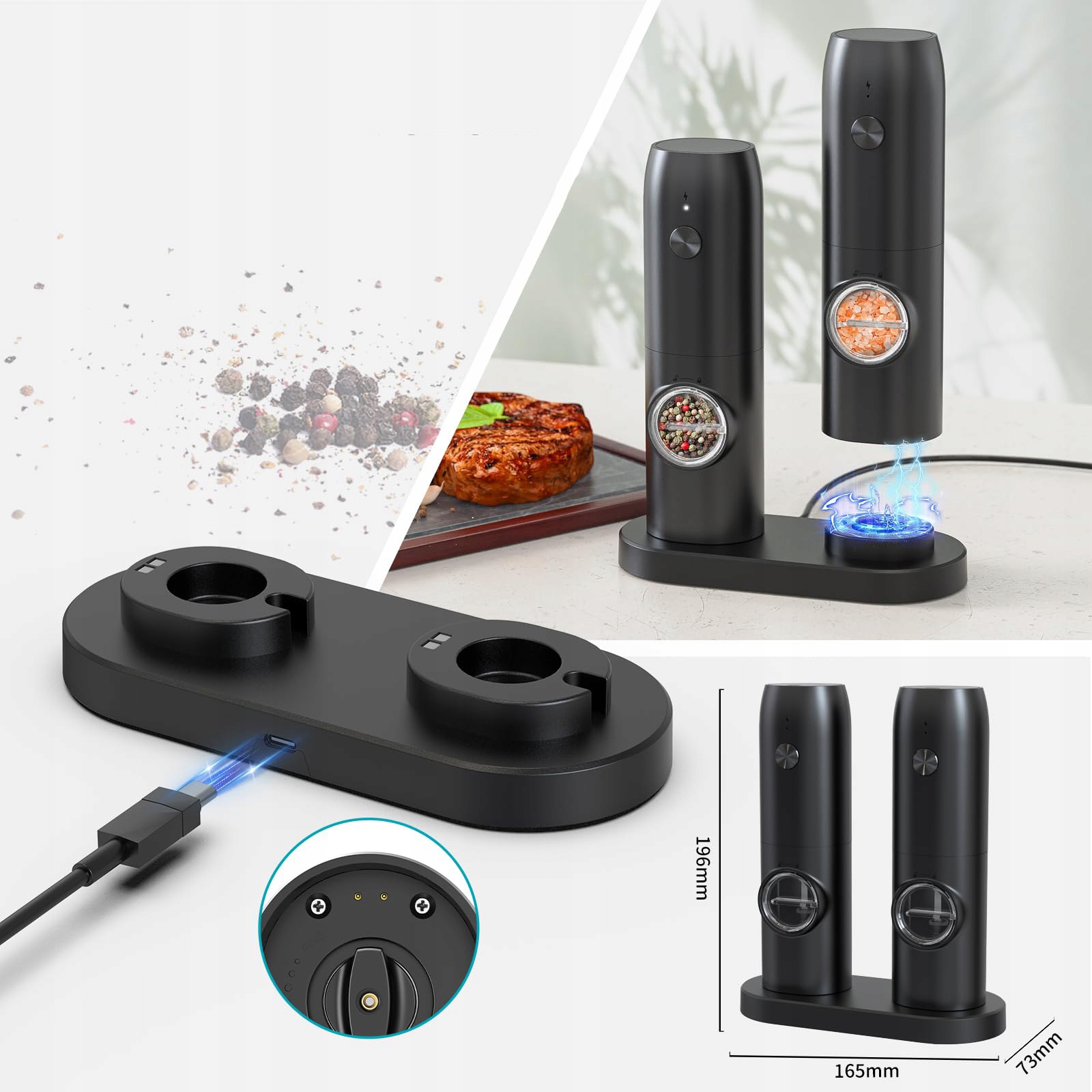 ЕЛЕКТРИЧНА ПЕРЕМОЛИНКА 2 ШТ. LED НАБІР ЧОРНА ЗАРЯДКА USB