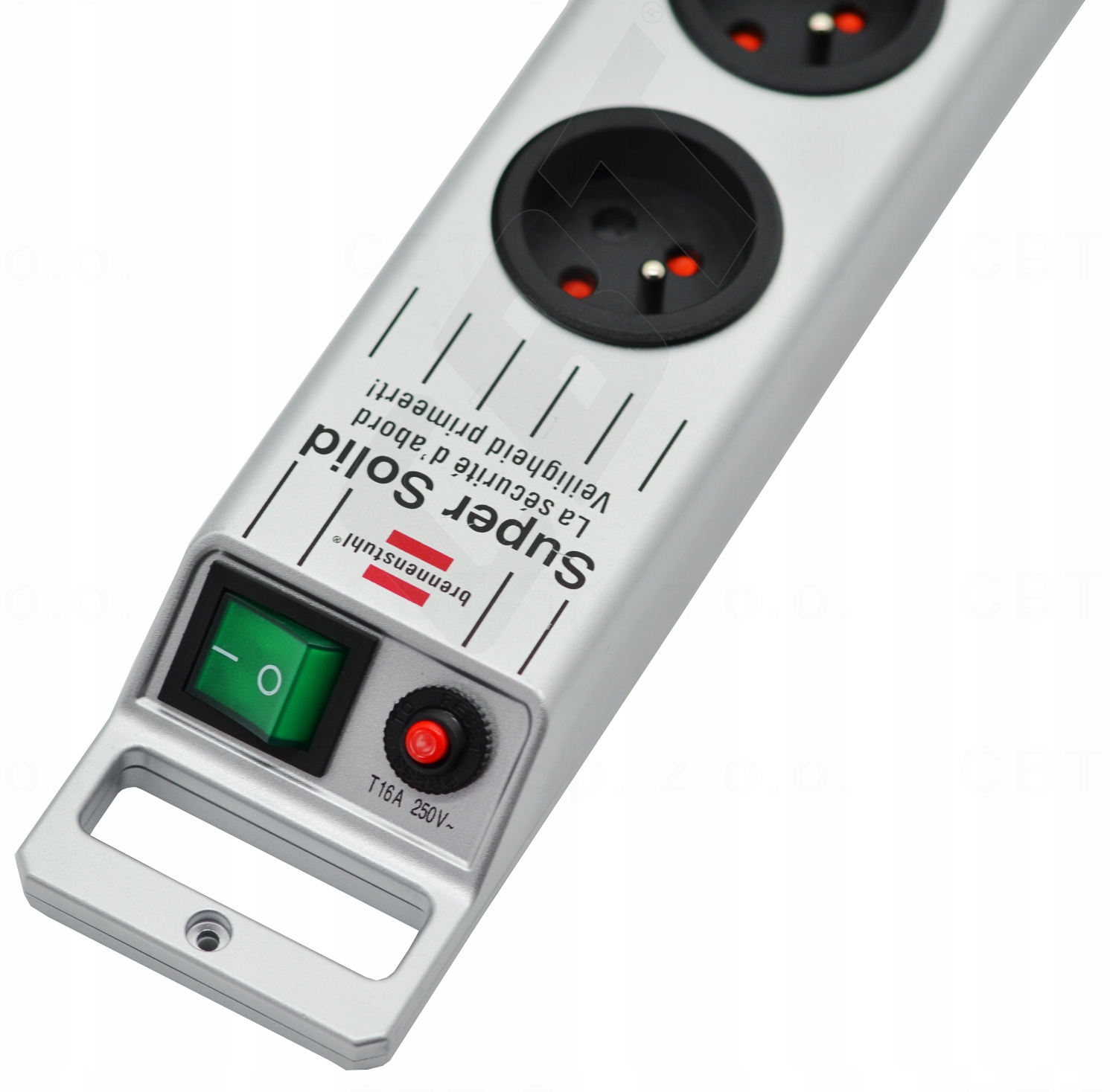 Подовжувач живлення Super-Solid та інші подовжувачі Brennenstuhl мають розетку для кабелю навпроти вимикача. Це допомагає зберегти естетичність і полегшує роботу зі смугою у важкодоступних місцях, наприклад під столом.