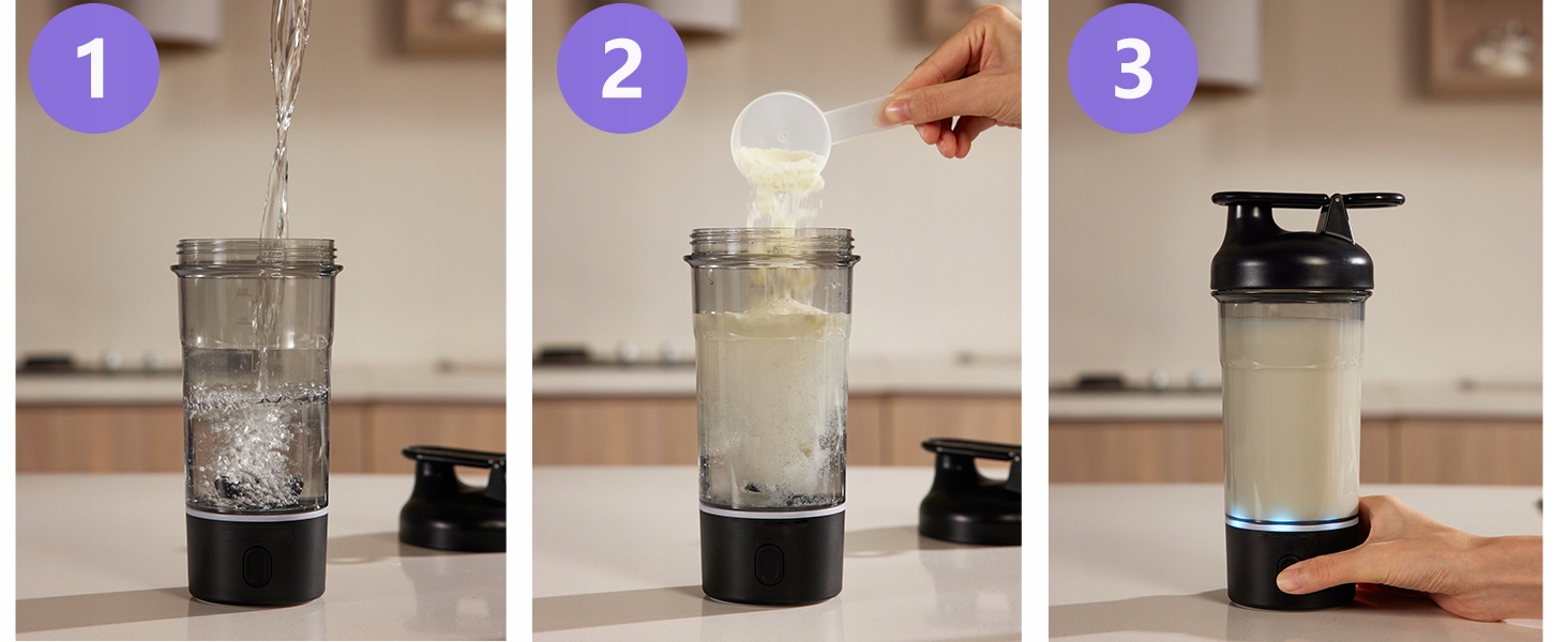 Наші інноваційні пляшки з білковим струмом з 2 режимами змішування для отримання більш плавних сумішей. Режим блендера: Довге натисніть кнопку для перемішування, змішування 60 -х автоматично вимикається. Пульсуючий режим: подвійно -затискання кнопки і натисніть довго, натисніть і тримайте багато разів, без зусиль, усуваючи стійкі грудочки, незалежно від того, чи це білок, молоко чи молочні коктейлі
