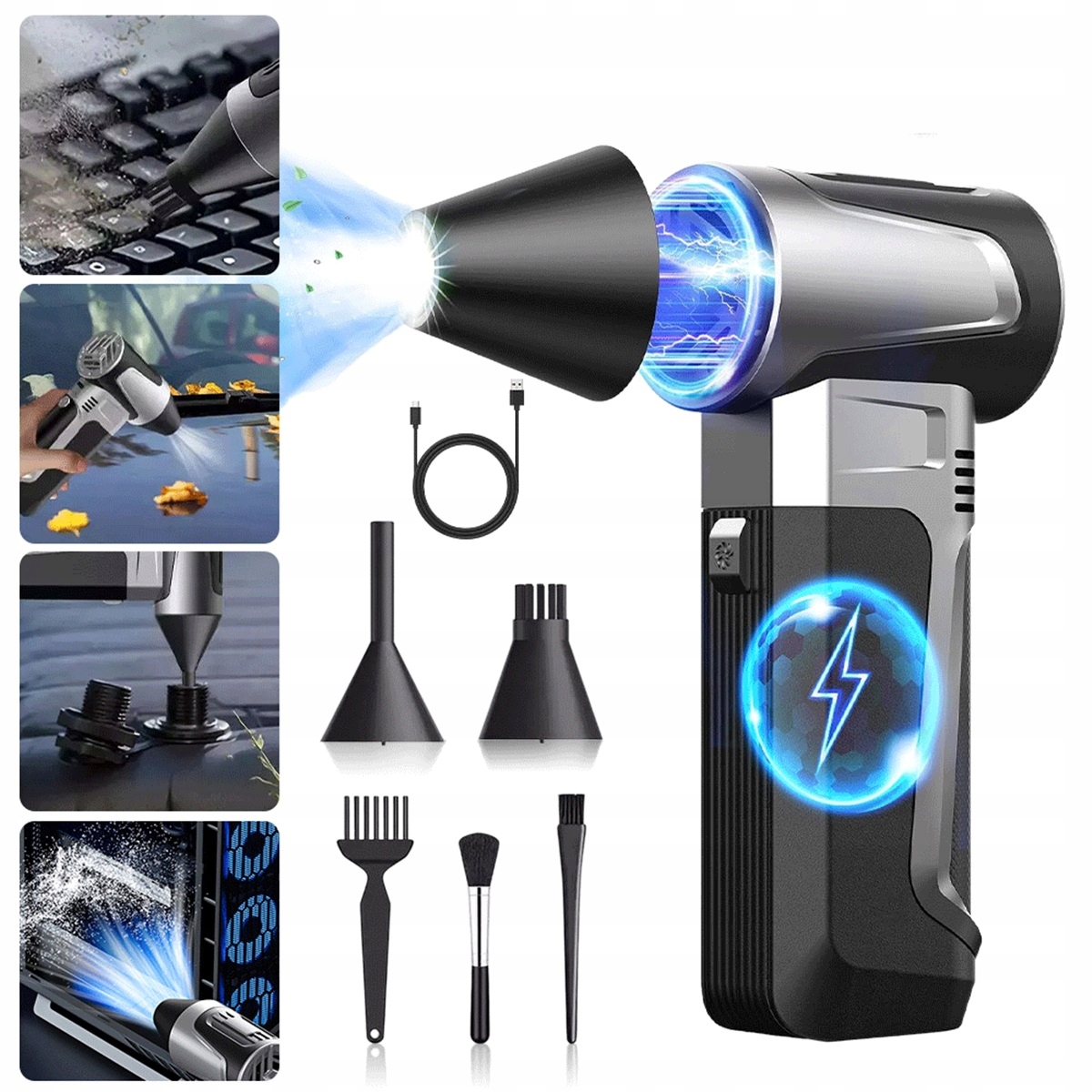 ❇️Це наша турбоповітродувка, ваш найкращий союзник. Ця міні-повітродувка підходить для широкого спектру завдань прибирання, включаючи чищення клавіатур комп’ютерів, ноутбуків, камер, автомобільних сидінь і жалюзі. Але це ще не все! Окрім електронних пристроїв, він також може надувати надувні матраци та рятувальні круги, що робить його ідеальним для пригод на природі, таких як пікніки та розведення багать. Легко вирішити всі ваші проблеми за допомогою лише одного інструменту.
