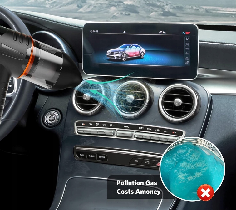 Комп’ютерний пилосос 2-в-1: автомобільний пилосос має Конструкція видування та всмоктування 2-в-1 із 8 насадками та 3 щітками для чищення для різних цілей і без зусиль видаляє пил і бруд, що застрягли на комп’ютерах, диванах, вікнах, щілинах тощо.