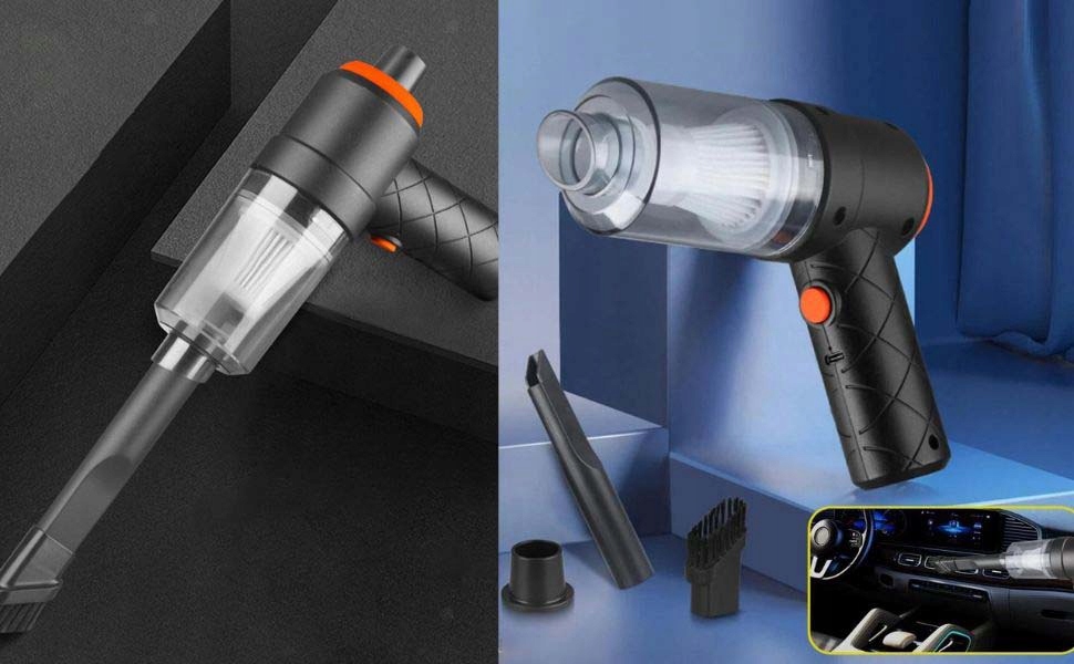【Універсальний】: двофункціональний пилосос із функцією видування та всмоктування, оснащений довгою всмоктуючою насадкою, насадкою для видування та щіткою для пилу, підходить для різноманітних пейзажів, може досягти будь-якого куточка вашого автомобіля або вдома, простий у використанні для ручок, які важко чистити.