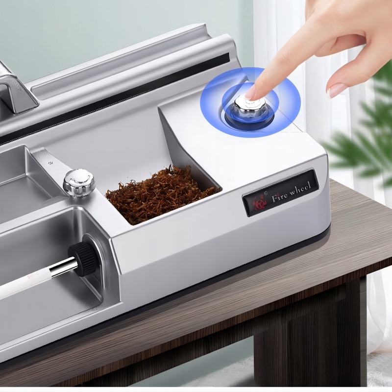 ressience для використання: обертовий перемикач у верхній частині машини використовується для регулювання швидкості, , і вся операція займає лише кілька секунд. Просто виберіть правильну металеву трубку, покладіть вирізати тютюн, регулювати швидкість і герметичність, а потім натисніть перемикач, , щоб автоматично приготувати сигарети.