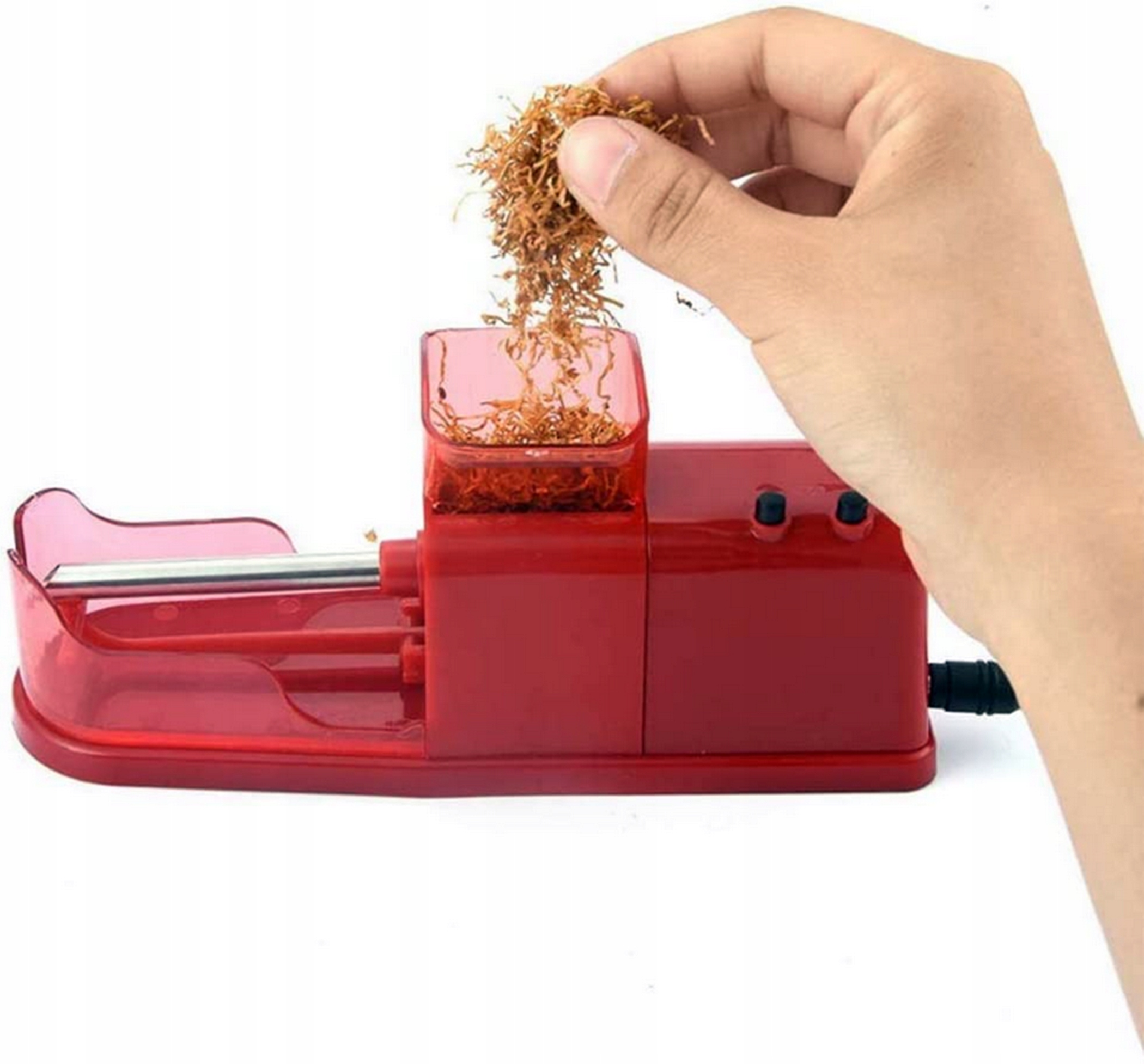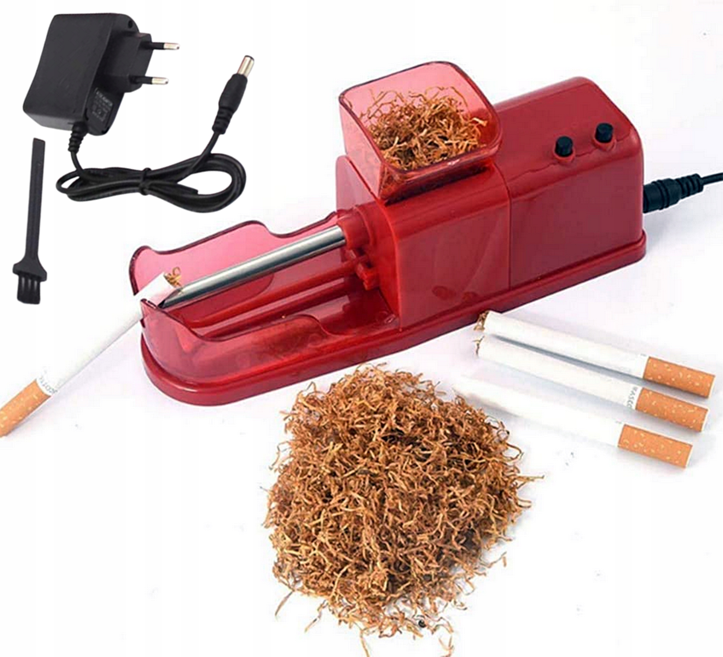 Маленька, зручна, дуже проста у використанні електрична машина для заправки сигарет. Він виготовлений з ретельно відібраних матеріалів, що робить його дуже міцним і стійким до тривалого використання. Чудовий прилад, завдяки якому ми заощадимо не тільки час, а й гроші.