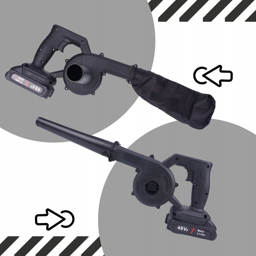 - ⭐mocna електрична повітродувка для листя, піску та снігу: 48 В пилосос для листового очищувача> Світло та ефективна бездротова фен з пилососним очищувачем для середніх і великих садів, що ідеально підходить для видалення жорстокості, таких як трава, голки та листя. Він характеризується потужністю вентилятора згоряння та зручністю бездротової роботи, а головне - не вимагає підготовки паливної суміші.