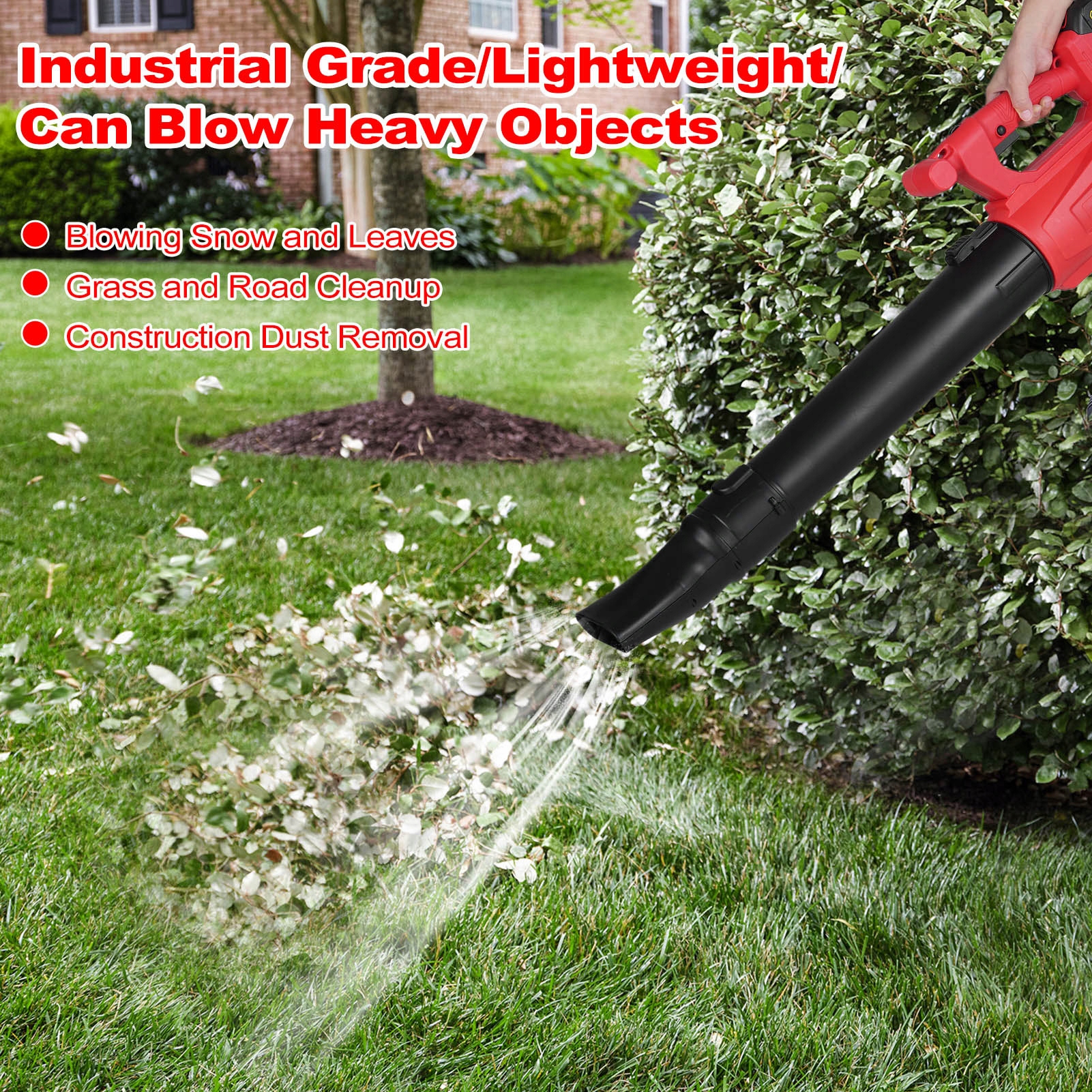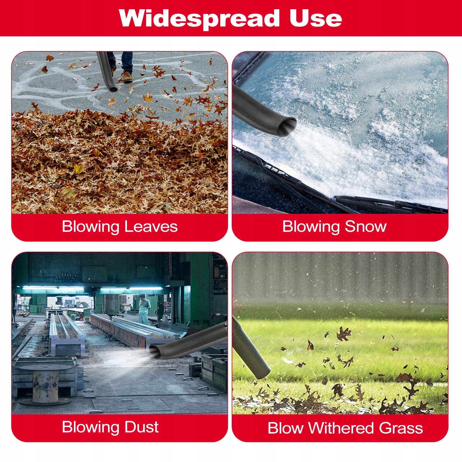 6. Підходить для багатьох сценаріїв: ідеально підходить для підмітання сміття з магазинів, гаражів, під’їздів, відкритих дворів і садів. Він також ефективний для здування листя, видалення снігу, видалення пилу, сміття, павуків і сушіння поверхні автомобіля.