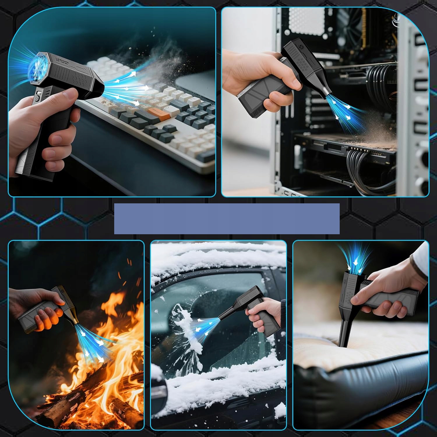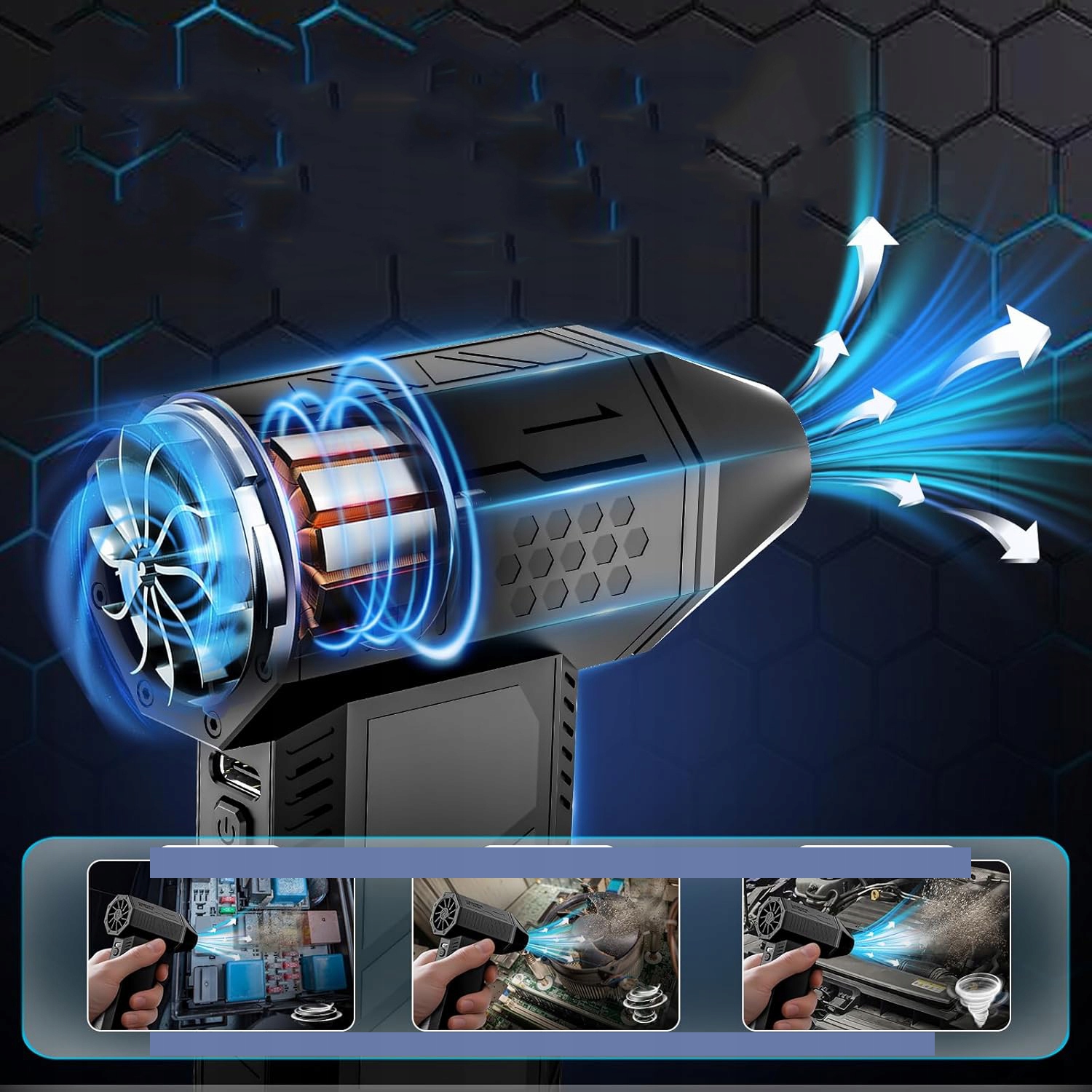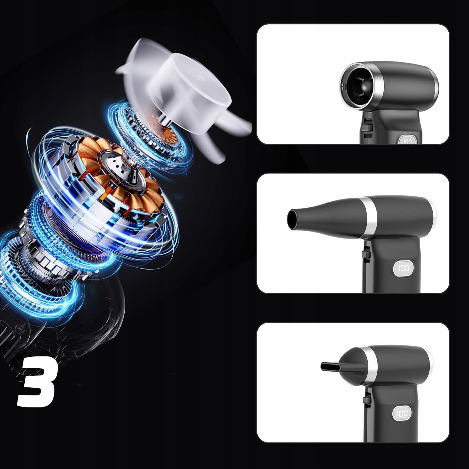 🫀🫀110 000 об/хв ЕНЕРГОЗБЕРЕЖНИЙ ТА ЕФЕКТИВНИЙ БЕЗЩІТКОВИЙ ДВИГУН: пилосос працює від новітнього німецького високошвидкісного безщіткового двигуна з максимальною швидкістю 110 000 обертів за хвилину, що дозволяє ретельно очистити комп'ютери, клавіатури, салони автомобілів, дивани, лінзи, іграшки, кондиціонери та електронні пристрої. Будучи екологічно чистим багаторазовим пристроєм, він є чудовою альтернативою балончикам зі стисненим повітрям.