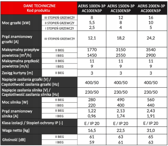 ЕЛЕКТРИЧНА ПОВІТРЯНА ЗАВІСА AERIS 100EN-3P 400v