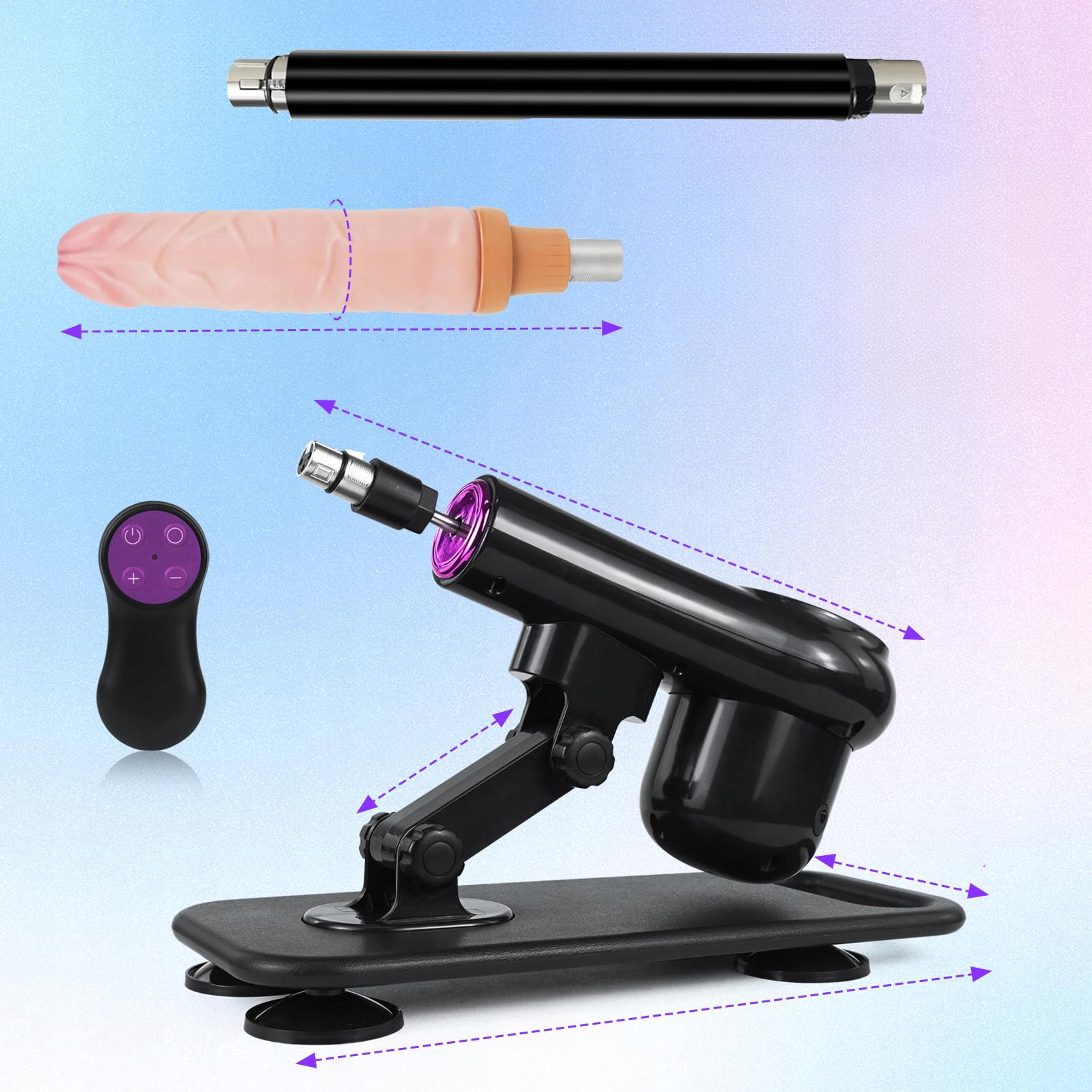 Бездротовий пульт дистанційного керування дозволяє повністю контролювати роботу пристрою на відстані. Механізм дозволяє подовжити прибл. 2,36" (приблизно 6 см) і швидкість до 420 рухів за хвилину. Доступний 21 різний режим роботи, а інтуїтивно зрозумілі кнопки на пульті дистанційного керування використовуються для вмикання/вимкнення, зміни програми та плавного регулювання швидкості - "+" і "-". Завдяки цьому ви можете легко налаштувати темп і стиль роботи відповідно до ваших потреб.
