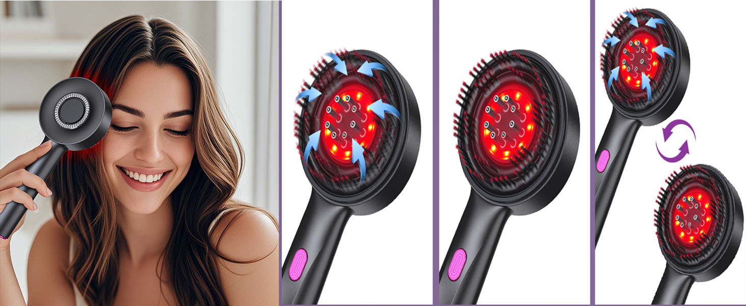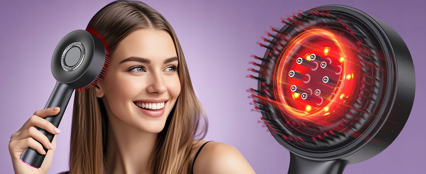 ЕЛЕКТРИЧНА ЩІТКА ДЛЯ МАСАЖУ ВОЛОССЯ З ЧЕРВОНИМ СВІТЛОМ І ДОЗАТОРОМ