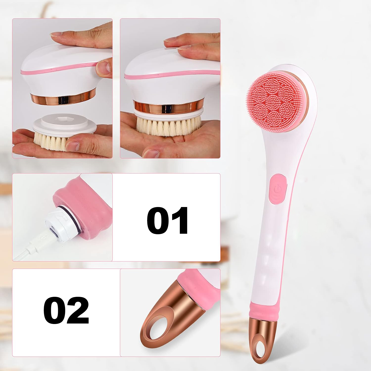 ЕЛЕКТРИЧНА ЩІТКА ДЛЯ МИТТЯ СПИНИ ТА МАСАЖУ ТІЛА НАБІР 4 В 1