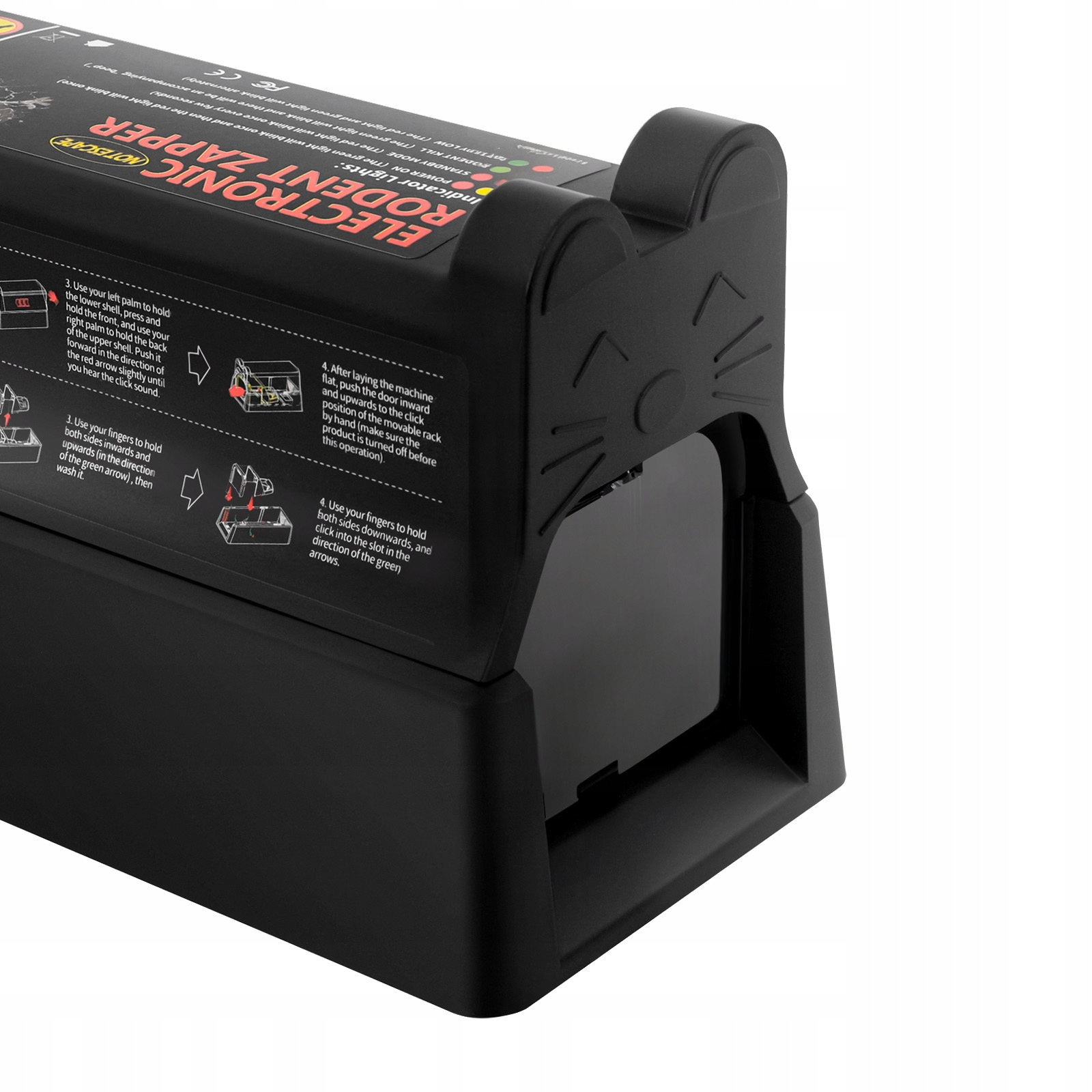 Продумана конструкція: під час лову щурів блимає зелене світло, а виріб подає звуковий сигнал, щоб нагадати вам вчасно очистити його, щоб уникнути гниття трупів щурів. Крім того, коли продукт під напругою, червоний і зелений індикатори почергово блимають, щоб нагадувати вам замінити акумулятор або перевірити його.