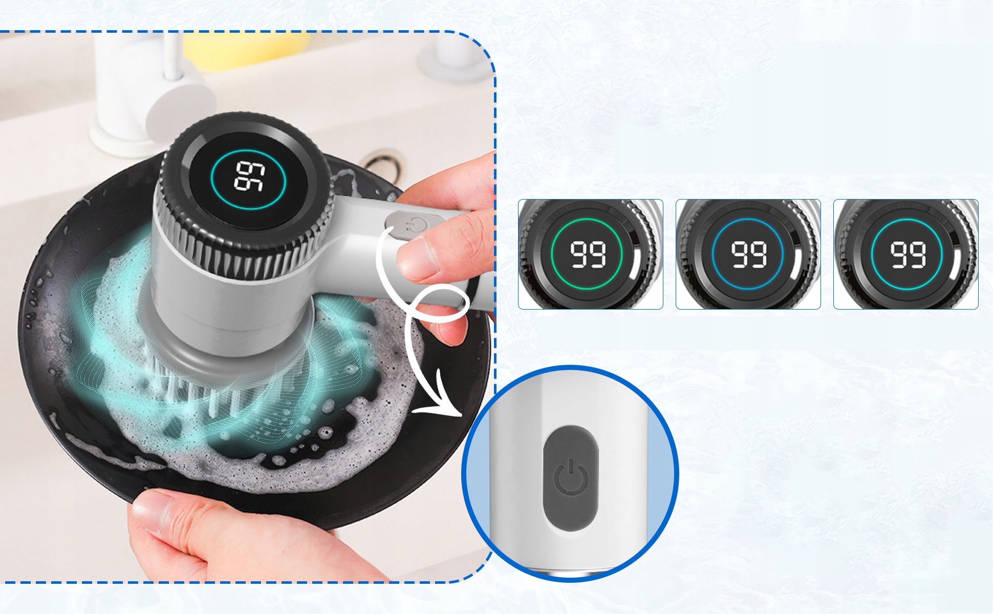 ⚙️ 3 регульовані швидкості: користувач може вибрати між 320 об/хв, 340 об/хв та 360 об/хв, регулюючи швидкість очищення відповідно до типу забруднення.