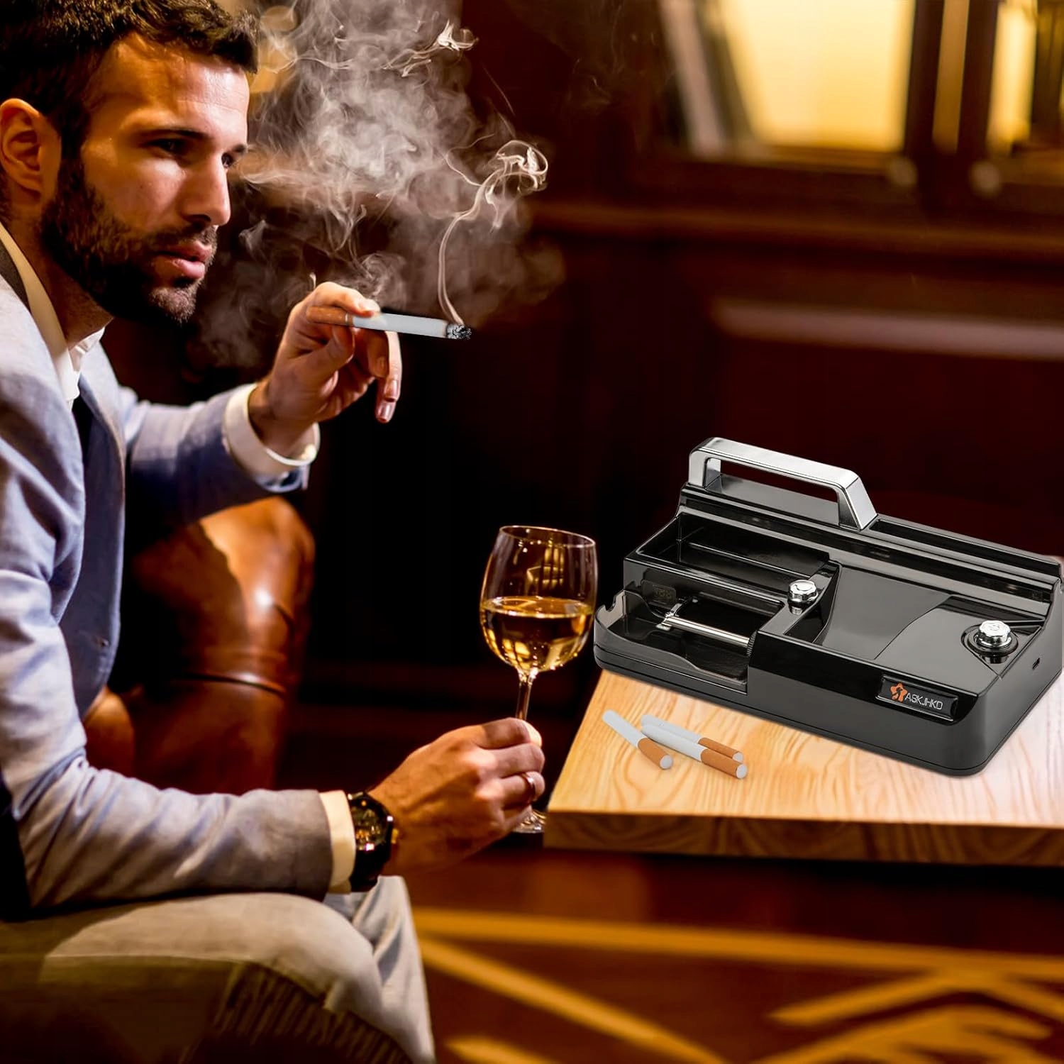 Електрична машина для заправки та скручування сигарет постачається з джерелом живлення, щіткою для чищення, інструментом для наповнення та трьома змінними трубками різного діаметру. Він простий у використанні і є ідеальним подарунком для любителів самостійно приготувати сигарети.