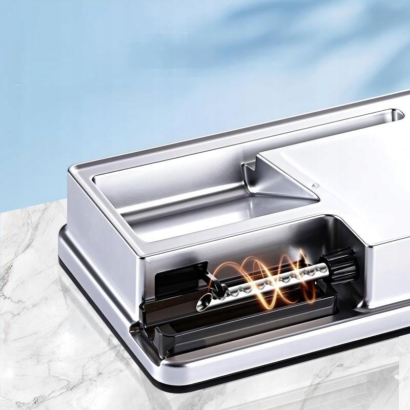 Знімний лоток у нижній частині відділення для сигарет збирає відходи тютюну, запобігаючи утворенню відходів і зберігаючи робоче місце в чистоті.