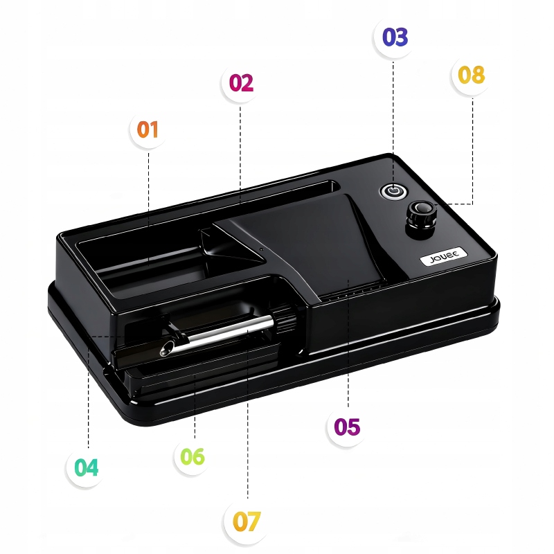 Знімний лоток у нижній частині відділення для сигарет збирає відходи тютюну, запобігаючи утворенню відходів і зберігаючи робоче місце в чистоті.