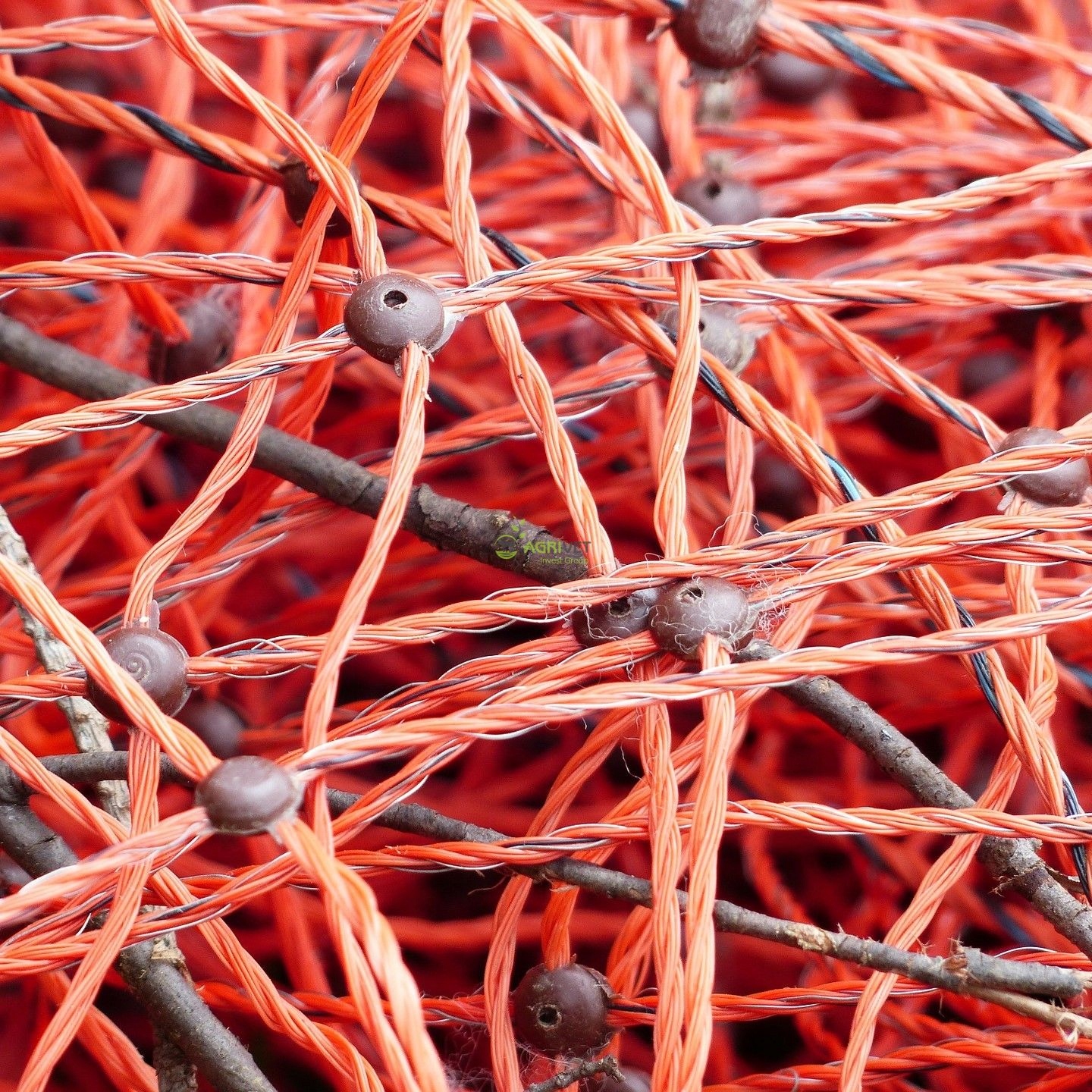 Німецький продукт, висока міцність, висока якість виготовлення Помаранчеві дроти та кілки (14 кілок) Горизонтальні канати з тканими, електропровідними хромонікелевими дротами. Горизонтальні лінії, з’єднані ущільненнями з вертикальними лініями, що стабілізують структуру сітки.