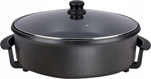 Електрична сковорода ALPINADV-4042 потужністю1500W маєантипригарну поверхнюі знімний термостат зплавним регулюванням b>. Велика багатофункціональна сковорода з високим краєм (Ø 42 см) для смаження, приготування та збереження тепла м'яса, котлет, пасти, паельї або овочів. Для прямого подачі на стіл після видалення пробки: ідеально підходить для вечірок і подій вдома, легко подавати також у саду чи кемпінгу. Легке керування завдяки плавному регулюванню температури та світловому індикатору.