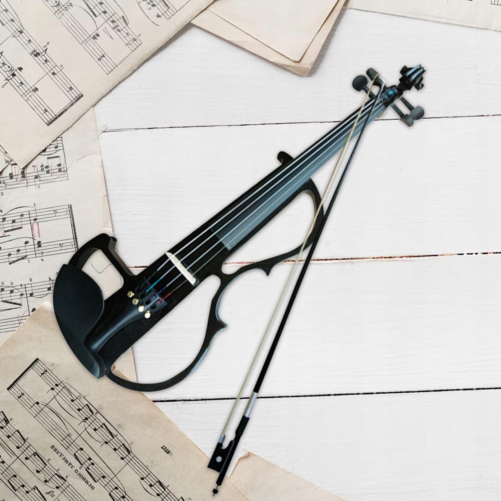 [Стійкий матеріал] Електрична скрипка виготовлена з твердої деревини, поверхня пофарбована та гладка, звук буде більш чітким, стабільним, яскравим, міцним, придатним для тривалої практики.