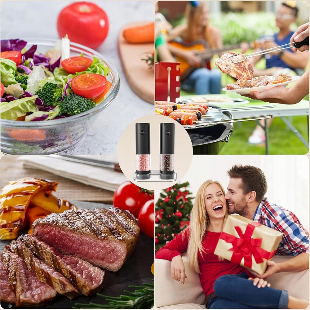 - 🧂 Ліровані 5 рівнів товщини, оснащених ручкою для регулювання, ви можете легко налаштувати, щоб вибрати товщину спецій, солі або перцю. Światło очолив Wącza się automatycznie, gdy młynek jest wączony.
