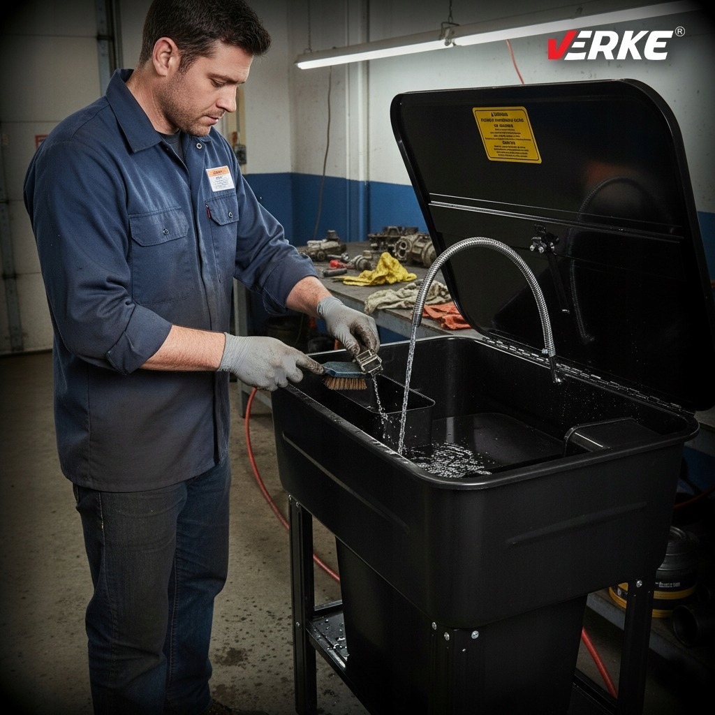 Професійна електрична мийка VERKE 76 L є необхідним обладнанням для кожної майстерні, автосервісу, виробничого цеху, пункту вулканізації та гаража для любителів. Розроблений для інтенсивного використання, він гарантує ефективне, швидке та безпечне очищення інструментів, деталей автомобіля, елементів машин або компонентів після процесів обробки.