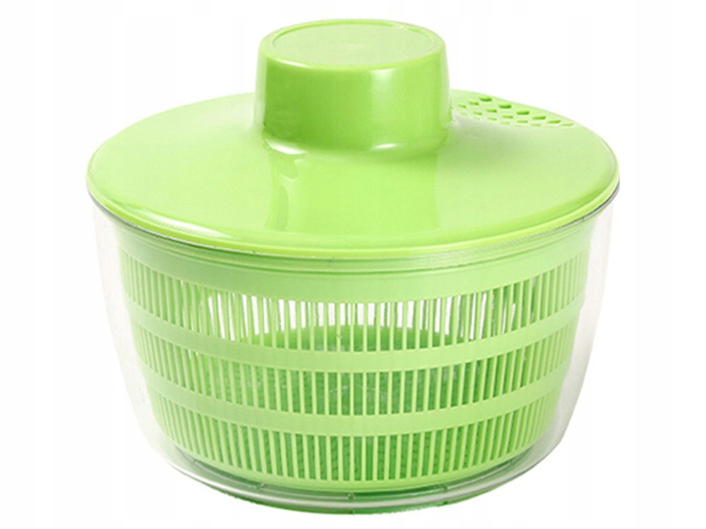 Конструкція, яка плавно відокремлює сушений салат від води через кошик, підвішений у повітрі. Продукт виготовлений з прозорого пластику. Після сушіння харчових продуктів ви можете зробити салат у великій пластиковій мисці, яка включена .
