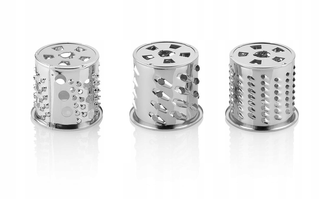За допомогою ви можете легко змінити обладнання з м’ясорубки на електричну тертку. У комплект поставки входять три маленькі барабанні терки, повністю виготовлені з нержавіючої сталі, за допомогою яких можна швидко і без зусиль натерти овочі, сир і домашні панірувальні сухарі. Завдяки електричній тертці ви більше не відмовлятиметеся від нескінченного ручного натирання овочів для приготування супів, начинок, овочевих салатів чи інших вегетаріанських страв.