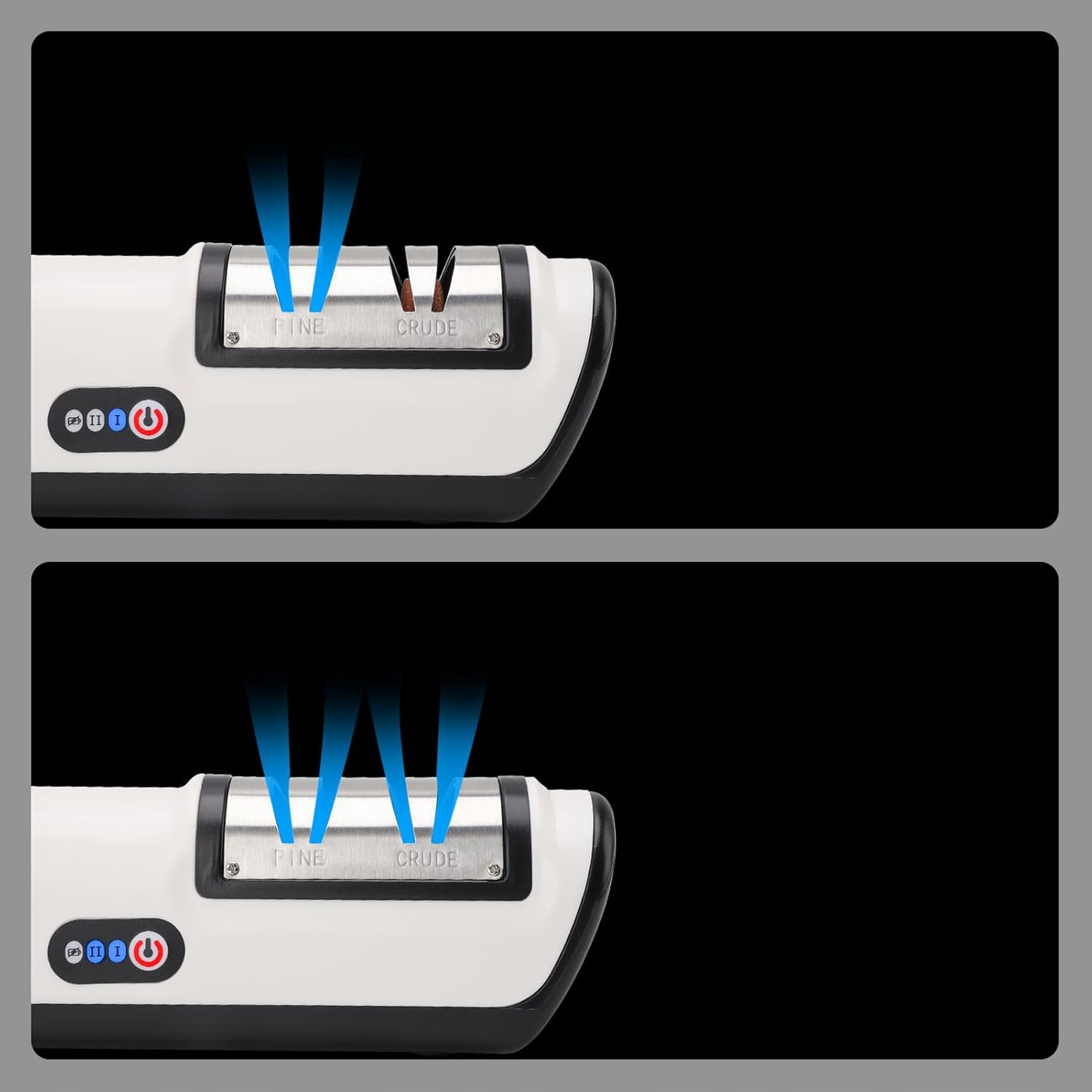 Наша електрична точилка для ножів була розроблена для максимальної зручності та ефективності. Завдяки цьому кожен ніж на вашій кухні завжди буде ідеально гострим.