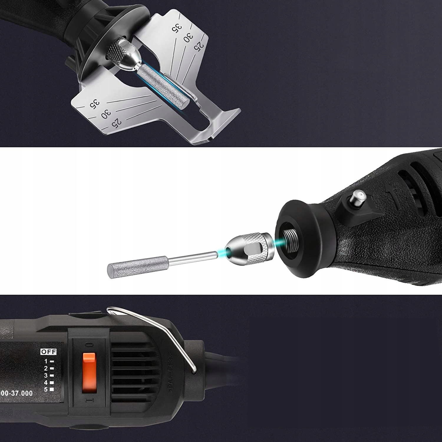 - ☑️Швидкий і точний за допомогою цього електричного точила для ланцюгових пилок ви можете швидко заточити всі свої ножі під однаковим кутом і до однакової глибини, просто встановивши кут загострення та переміщаючи галтель вперед і назад.