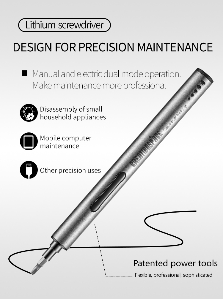 Надлегкий корпус у формі ручки з алюмінієвого сплаву вагою лише 57,5 г є ідеальним помічником для обслуговування точних електронних виробів, таких як телефони, планшети, ноутбуки.