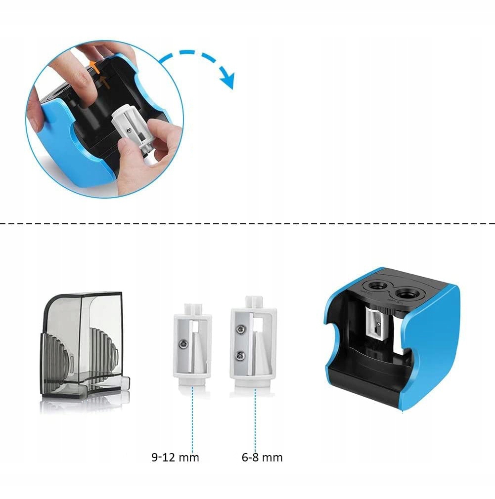 ✏️✏️ Вміст упаковки: 1 x електрична точилка для олівців, 6 x леза (2 леза на точилку), 1 x USB-кабель для передачі даних, 1 x посібник користувача.
