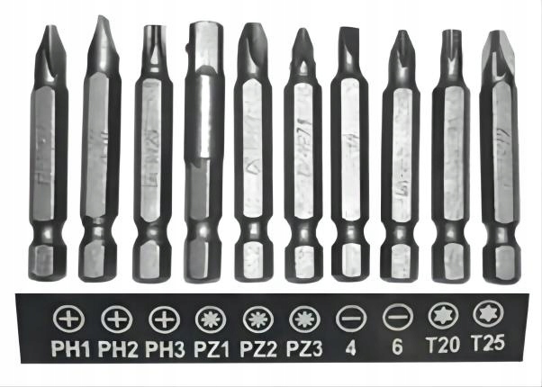 Поставляється з 10 загальними специфікаціями насадок для викрутки для більшості щоденних потреб.