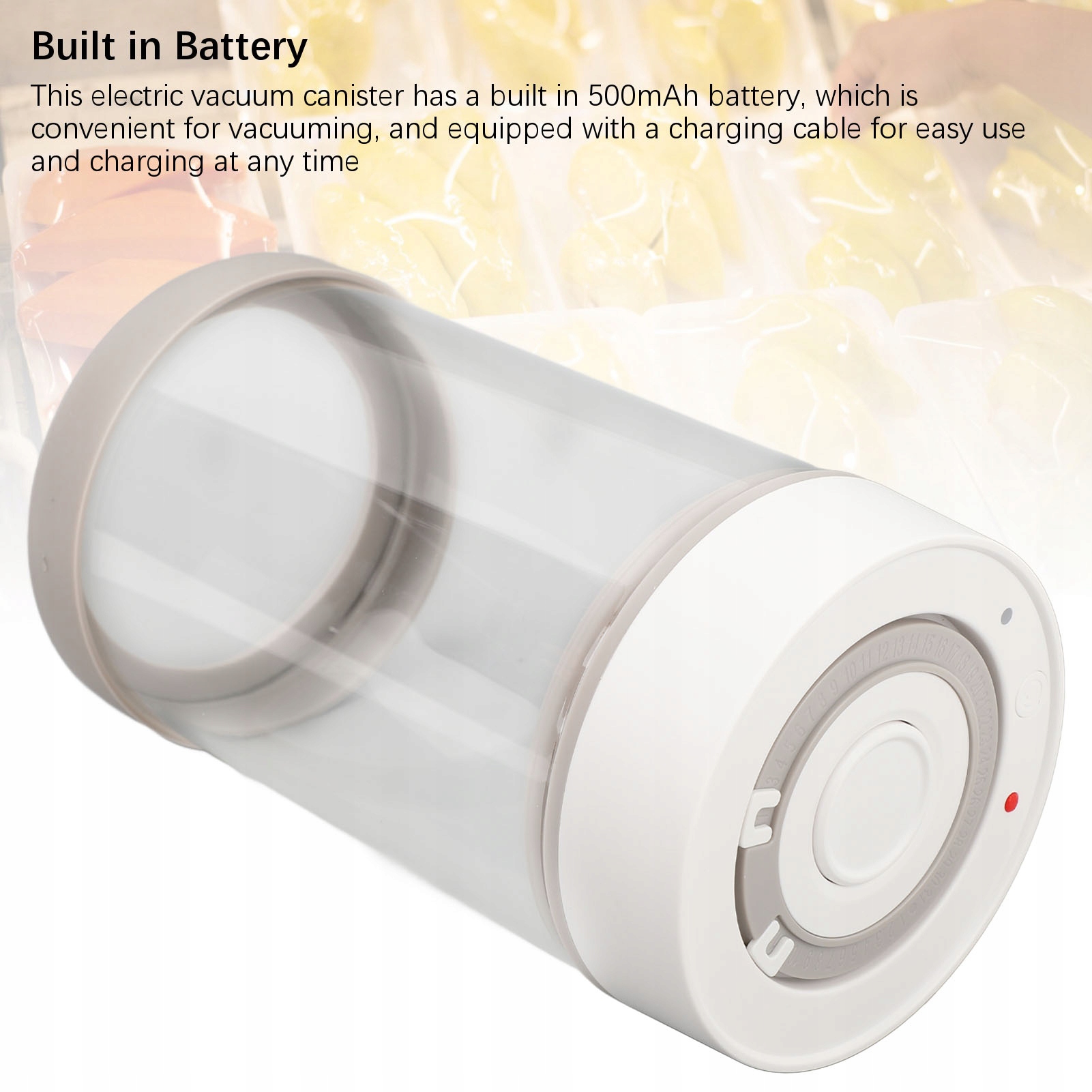 4. Побудований -в акумуляторі: Цей електричний контейнер для очищення вакууму має побудований акумулятор 500 мАг, що зручно для вакуумування і оснащений кабелем, який дотримується використання та консультування в будь -який час
