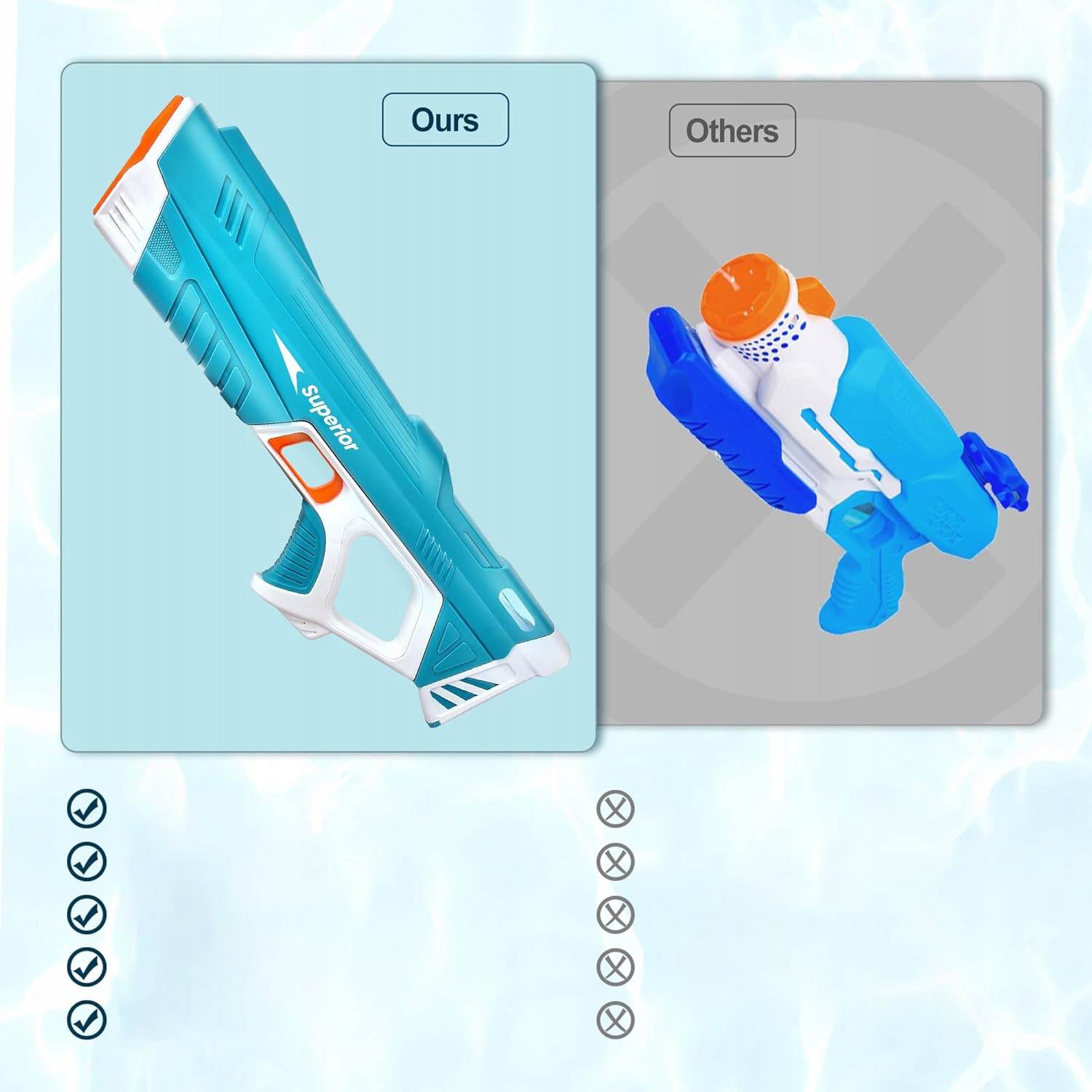 - Цей водяний пістолет має велику силу та діапазон до 10 метрів, завдяки якому він ідеально підходить для водних битв з друзями та родиною.