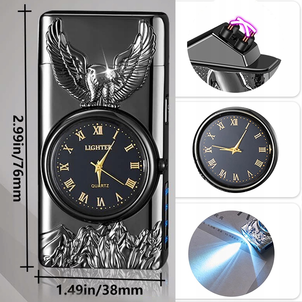 🔥- Це не просто запальничка, світло вгорі вмикається, коли ви закриваєте кришку, натиснувши бічний перемикач, а також має годинник.