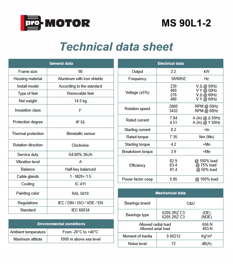 - Номінальна потужність KW - 2.2