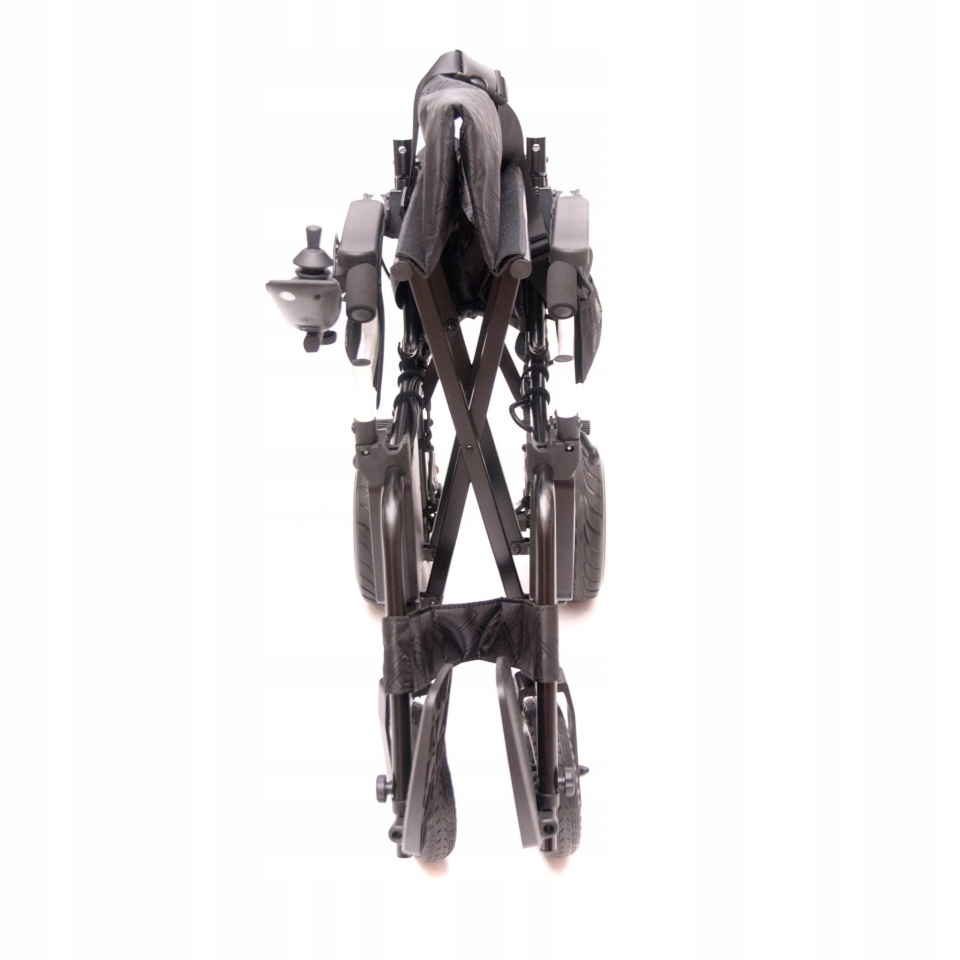 - Можливість швидкого складання без необхідності розбирання акумуляторів забезпечує ефективне транспортування візки. Розмір після складання нагадує розмір складної стандартної візки, завдяки якому ми маємо можливість транспортувати навіть у невеликому багажнику. Навколо квартири та зовні. > Зламаний спинка зменшує розміри візки після складання