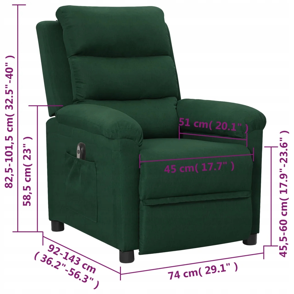Сядьте і відпочиньте в цьому надзвичайно зручному, електричному кріслі з нахиленим спинкою! Електрична функція розгортання: Це крісло обладнано електродвигуном для подачі функції розгортання. Він пропонує 3 налаштування, тому ви можете легко відрегулювати спинку та підніжку під силою пульта дистанційного керування з 2 кнопками, щоб забезпечити комфорт. Сидячи: густо підкладені та м'які з тканинним сидінням, спинки та широкі підлокітники пропонують затишок і тепло та відчуття обгортання під час сидіння. Тканина представляє простий і гладкий вигляд і дихає і довговічний. Тверда і стабільна рама: дерев’яна та металева рама гарантує міцність та стабільність конструкції. Це складання крісла зручне та довговічне. Цей пристрій не призначений для використання особами (включаючи дітей) з обмеженими фізичними, сенсорними чи психічними здібностями, або відсутнім досвідом та знаннями, якщо вони не перебувають під наглядом або не були доручені щодо правильного використання пристрою особою, відповідальною за їх безпеку. Цей продукт не є іграшкою. Не дозволяйте дітям грати з пристроєм.