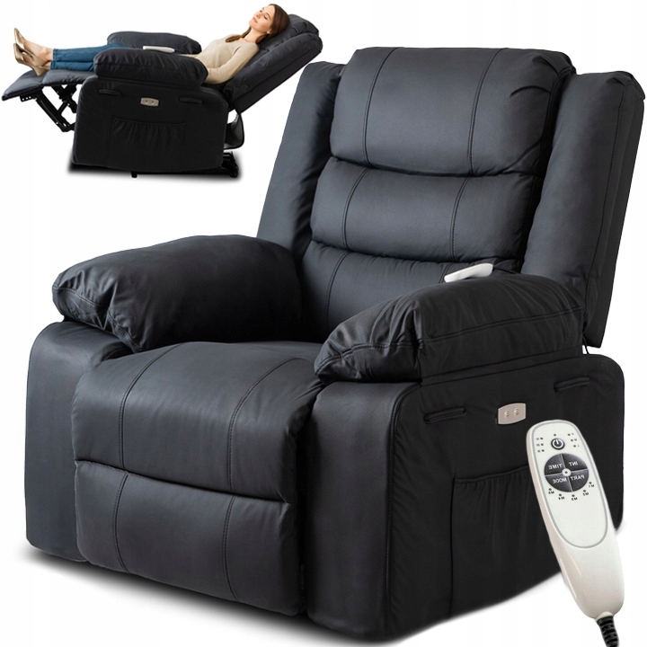 - Крісло з електричною функцією розгортання та масажу jasper в кольорі - Еко -Скін
